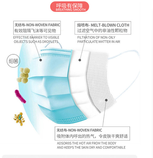 High Light : 3 Ply Face Mask To Prevent Dust, BFE 95% Face Mask To Prevent Dust